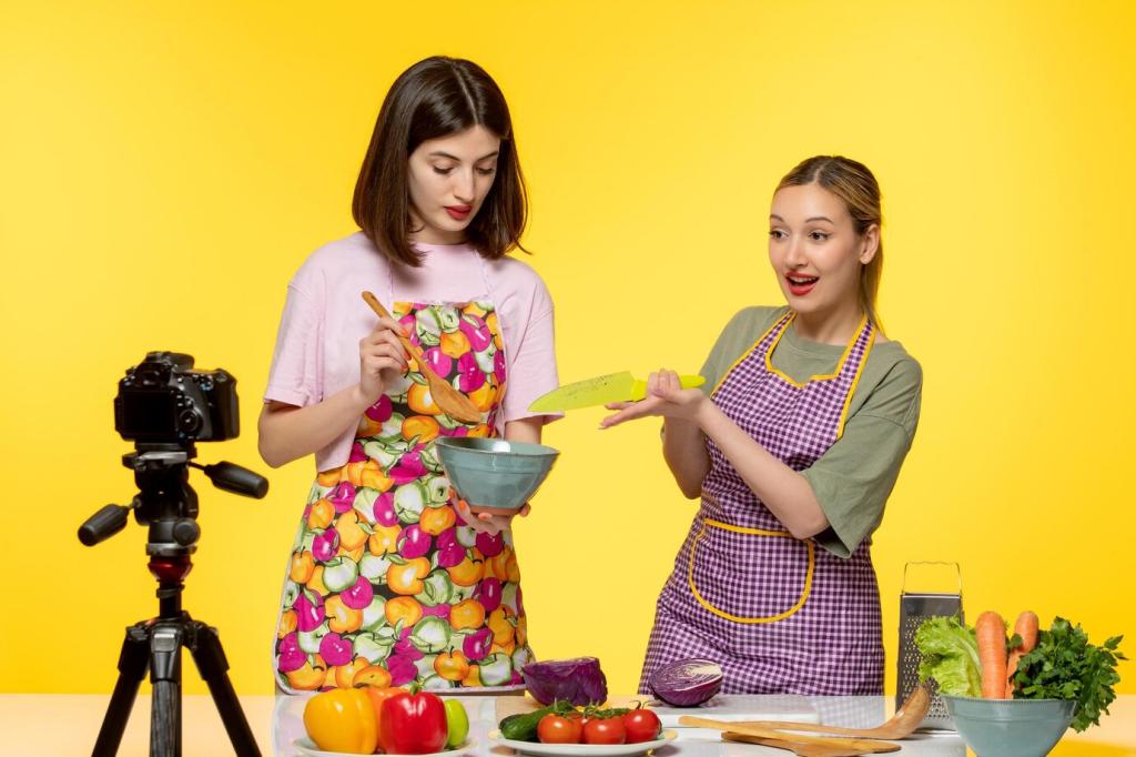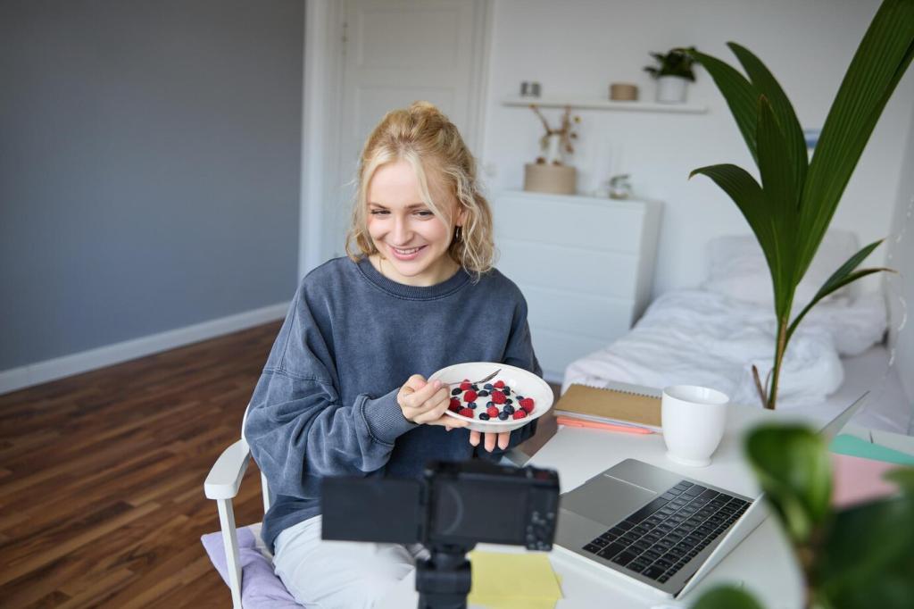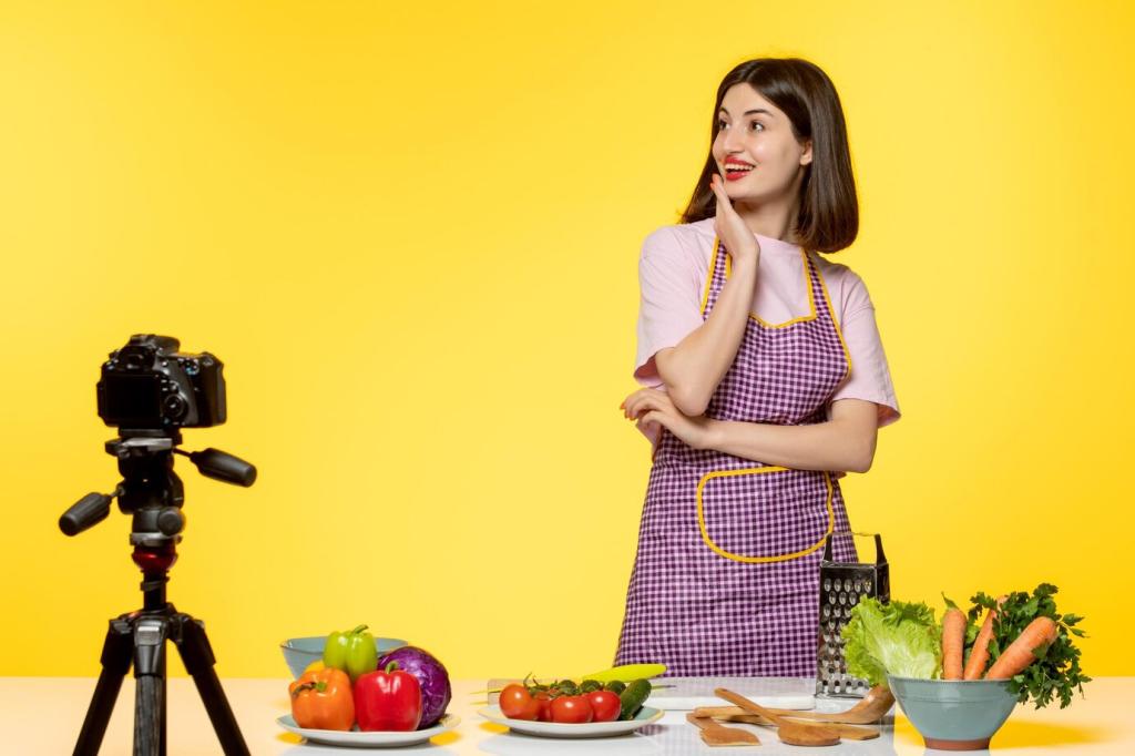 Soft, indirect daylight flatters food. Diffuse harsh beams with a sheer curtain, angle the plate at forty-five degrees, and avoid heavy color casts. Explain your lighting setup and invite readers to post their recreations using your hashtag.
